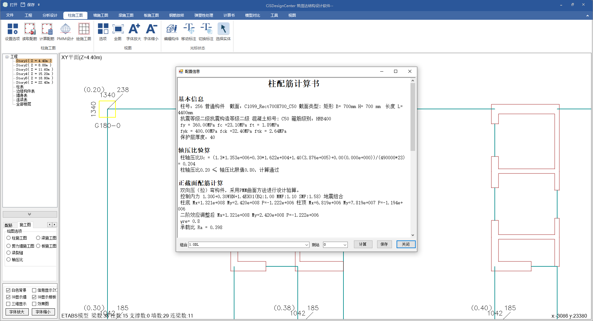 柱設(shè)計(jì)細(xì)節(jié)及配筋結(jié)果