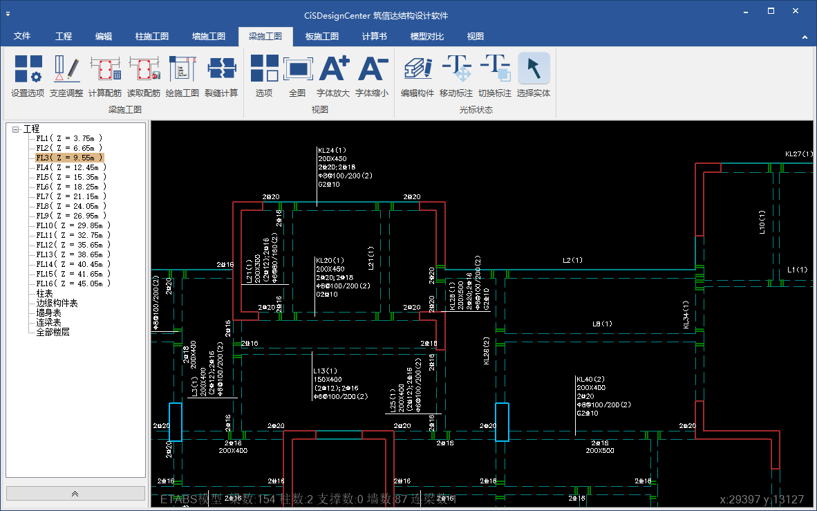 通過CiSDC軟件轉(zhuǎn)換的ETABS中文版/SAP2000中文版模型,除了轉(zhuǎn)換完整的幾何模型數(shù)據(jù)和荷載信息外,還對模型進(jìn)行了優(yōu)化處理,如合并框架梁柱、標(biāo)記ETABS中文版墻梁標(biāo)簽、自動布置線面單元連接處的埋設(shè)梁等,使其更好的滿足ETABS中文版/SAP2000中文版的建模要求,減少出錯機(jī)率。