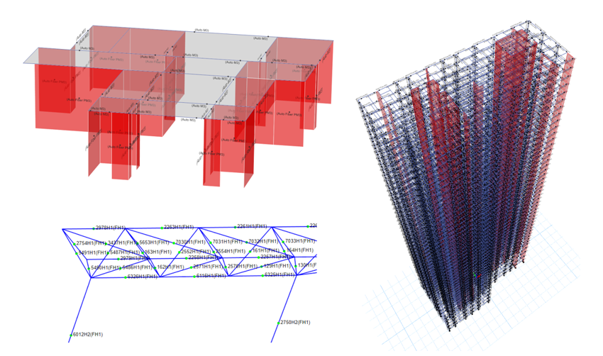 無論是國家標(biāo)準(zhǔn),還是廣東省標(biāo)準(zhǔn),都需要考慮多個模型下的分析與設(shè)計(jì)。例如是否考慮剛性樓板假定、地震工況中是否考慮偶然偏心、不同荷載工況下(如風(fēng)工況與地震工況)連梁的剛度折減系數(shù)不同等,為方便用戶管理多個模型,CiSDC實(shí)現(xiàn)了ETABS中文版多模型分析與設(shè)計(jì)功能?;诓煌?guī)范的參數(shù)要求,考慮不同工況下的模型的剛度調(diào)整與工況設(shè)置,自動將ETABS中文版標(biāo)準(zhǔn)模型轉(zhuǎn)換為指標(biāo)模型、非抗震模型和抗震模型,并同時(shí)完成這三個模型的分析計(jì)算、讀取大指標(biāo)結(jié)果、讀取構(gòu)件內(nèi)力、自動基于規(guī)范生成荷載組合、完成混凝土梁、柱、墻、樓板構(gòu)件的設(shè)計(jì)等工作,輸出報(bào)告書。