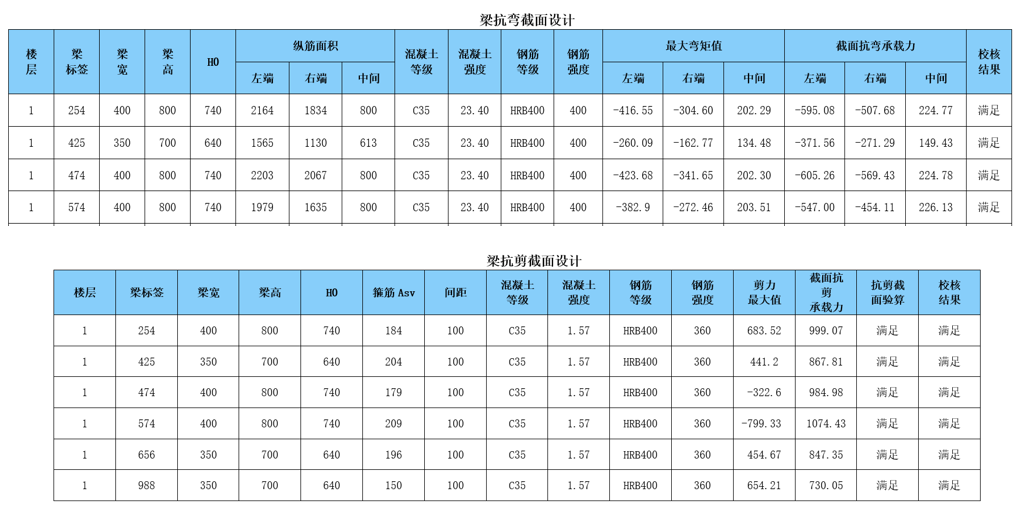 梁設(shè)計(jì)細(xì)節(jié)及配筋結(jié)果