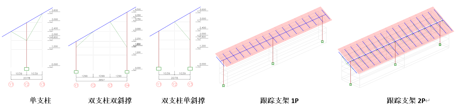 光伏支架有固定式光伏、跟蹤式光伏、柔性光伏支架等多種形式,其中固定式光伏支架和跟蹤式光伏支架形式固定,可以通過參數(shù)化方式建模。光伏支架結(jié)構(gòu)中的構(gòu)件有鋼構(gòu)件和冷彎薄壁構(gòu)件兩種類型,在PV_SAP中支持多種類型截面的定義。整個(gè)建模過程中也做了一些自動(dòng)化處理,提升建模效率。