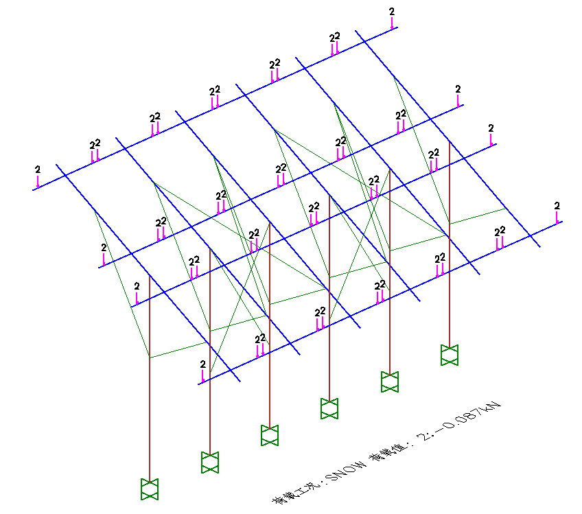 光伏支架結(jié)構(gòu)中的主要荷載是組件荷載、風(fēng)和雪荷載,組件荷載在參數(shù)話建模中進(jìn)行指定,風(fēng)和雪的參數(shù)在工程信息中進(jìn)行輸入,荷載的具體計(jì)算是根據(jù)《光伏支架結(jié)構(gòu)設(shè)計(jì)規(guī)程》中的相關(guān)條文進(jìn)行進(jìn)行計(jì)算,并將荷載施加到檁條上,荷載的具體計(jì)算過程可以在計(jì)算書中查看,荷載值可以直接在軟件中查看。