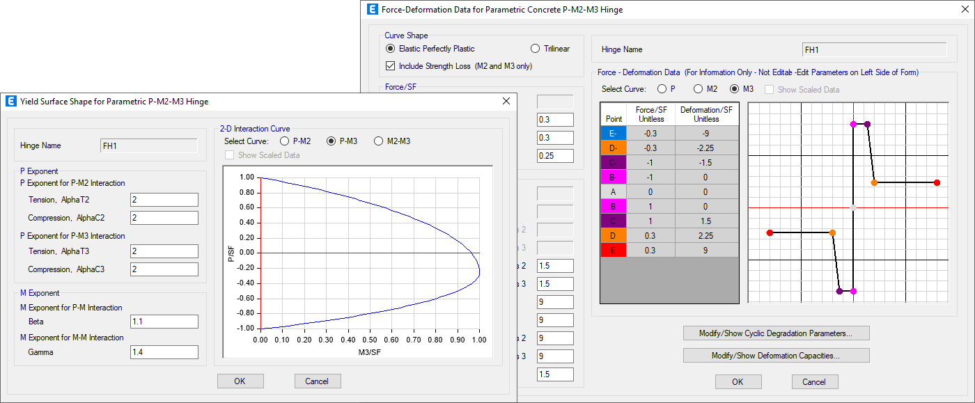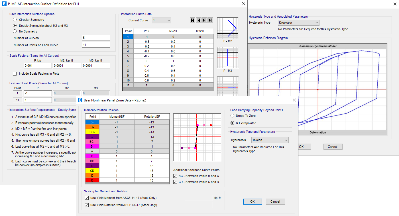 ETABS中文版 中的推覆分析包括實(shí)現(xiàn)FEMA 356的方法和塑性鉸,以及基于應(yīng)力應(yīng)變的纖維鉸選項(xiàng)。非線性分層殼單元使得用戶在推覆分析中可以考慮混凝土剪力墻、樓板、鋼樓板和其他有限元面單元的塑性行為。可以為鋼鉸和混凝土鉸定義力-變形關(guān)系。