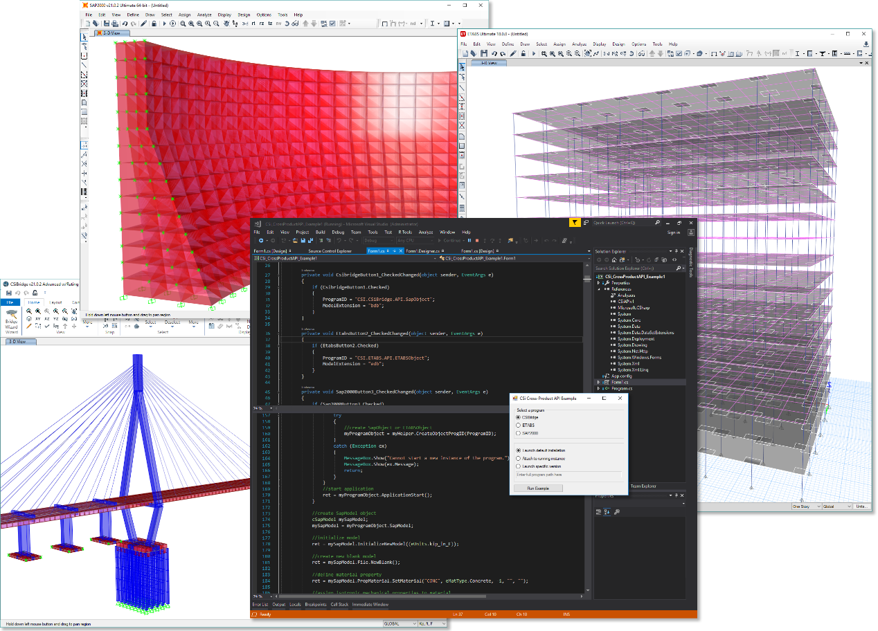 CSI API 目前可用于 ETABS中文版、SAP2000中文版 和 CSiBridge中文版。為了充分地利用開發(fā)成果,CSI API 在產(chǎn)品之間盡可能保持一致,以便使借助CSI API開發(fā)的工具和應(yīng)用程序可以輕松地適用于所有CSI產(chǎn)品。從ETABS中文版 v18、SAP2000中文版 v21和CSiBridge中文版 v21 開始,現(xiàn)在可以開發(fā)適用于這三款產(chǎn)品的跨產(chǎn)品API工具。用戶只需要編寫一次代碼就可以在所有三個產(chǎn)品中使用它。這些版本的API還向前兼容這些產(chǎn)品的未來主要版本,而無需重新編譯。