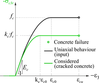 IDEA Concrete 采用混凝土、鋼筋、錨固的非線性本構(gòu)模型,利用協(xié)調(diào)應(yīng)力場法(CSFM)完成有限元分析。CSFM 是一種基于有限單元法的連續(xù)應(yīng)力場分析方法,可以根據(jù)橫向應(yīng)變自動(dòng)計(jì)算混凝土的有效抗壓強(qiáng)度,既可以用于承載能力極限狀態(tài),也能用于正常使用極限狀態(tài)。CSFM 采用設(shè)計(jì)規(guī)范提供的單軸的混凝土和鋼筋的本構(gòu)模型(應(yīng)力-應(yīng)變曲線),便于工程應(yīng)用。
