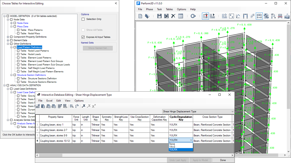 - 新版Perform3D可以通過交互式數(shù)據(jù)庫編輯添加、修改或刪除以下內(nèi)容: