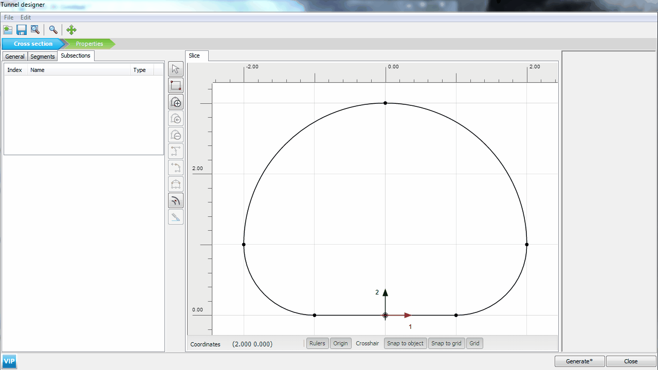 段(segments)和子分段進(jìn)行修改以便精確定位。對(duì)于用戶(hù)從CAD 導(dǎo)入的隧道斷面,