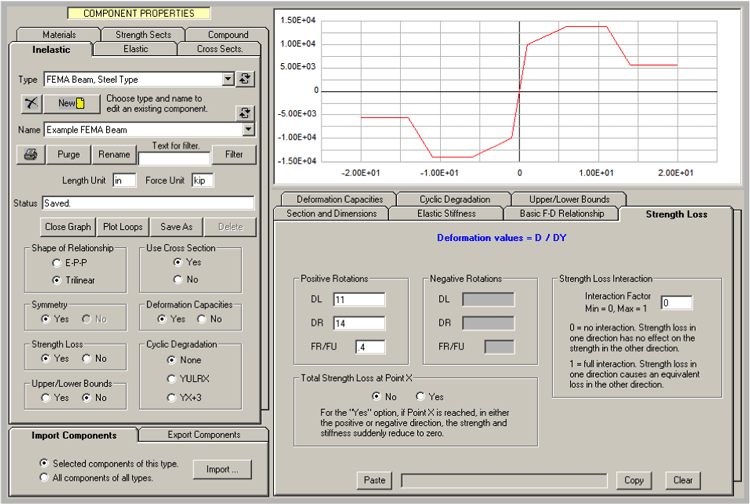 PERFORM-3D包括大量的組件,既有非彈性也有彈性。分析中計算的D/C比包括: