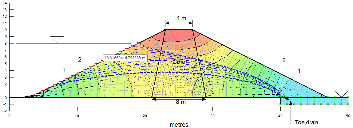 - 有限元穩(wěn)態(tài)/瞬態(tài)滲流分析,包括基坑排水、止水帷幕;大壩滲流、滲透力、滲透破壞、截面流量、土工膜、減壓井;引水渠、滲流量、排水溝、注水井對(duì)滲流的影響等。