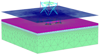 在近海巖土工程中,三維分析能夠精確地分析結構與土在不同荷載情況下復雜的相互作用,以及相互作用對應力和孔隙水壓力的影響。PLAXIS提供了很多本構模型能夠解決近海工程中經(jīng)常遇到的土層不排水問題,為了更精確地模擬近海工程遇到的相關巖土問題,還開發(fā)了NGI-ADP本構模型,軟土模型和軟土蠕變模型。