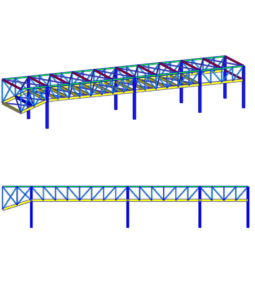 本教程旨在指導讀者在 SAP2000 中創(chuàng)建鋼結構連廊的幾何模型并完成屬性指定、荷載施加、結構分析與設計等工作。在具體操作過程中,讀者應熟悉并掌握 SAP2000 的以下功能:帶屬性復制、修改框架局部軸、交互式數據庫編輯、框架對象的導荷選項、虛面的定義與加載、自動地震荷載模式以及鋼結構設計的首選項和覆蓋項等。(SAP2000 模型版本:v23.3.0)