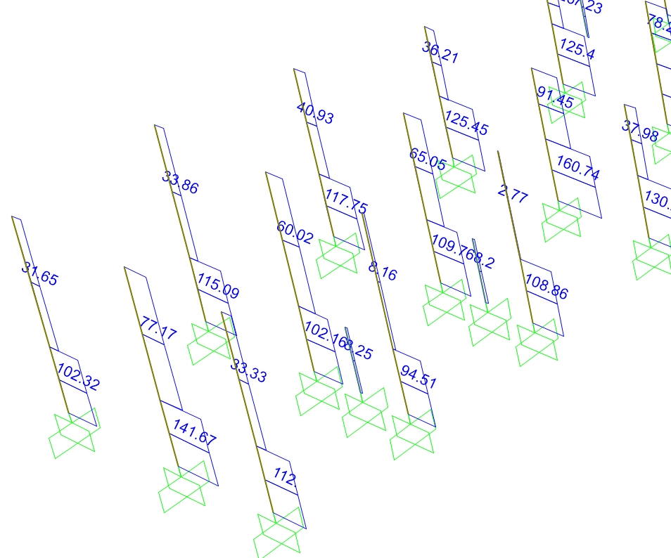 如上所示,對波浪造型屋面的開敞結(jié)構(gòu)基于虛面施加風(fēng)荷載,荷載分布如下左圖,柱剪力分布如下右圖。可以看見圖中柱內(nèi)力遠(yuǎn)遠(yuǎn)小于外荷載,甚至出現(xiàn)內(nèi)力與荷載反向的情況,原因是什么?