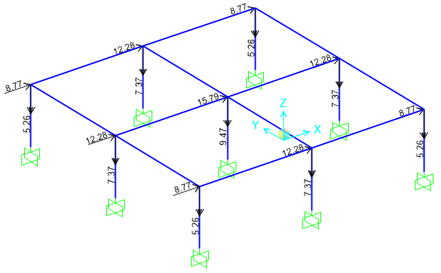 與自動地震荷載一致,根據(jù)《建筑抗震設(shè)計規(guī)范》中底部剪力法地震作用的計算公式,采用準剛性隔板時,程序會根據(jù)隔板范圍內(nèi)的各節(jié)點質(zhì)量分配用戶指定的集中力。現(xiàn)以某框架為例,對其施加 100kN 的自定義地震荷載: