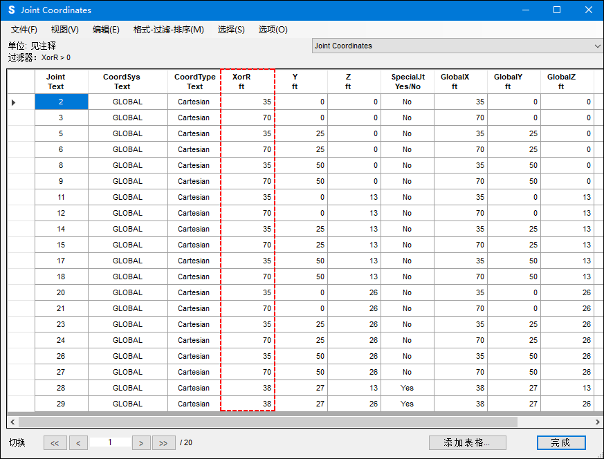 Connectivity Data > Joint Coordinates > Table: Joint Coordinates