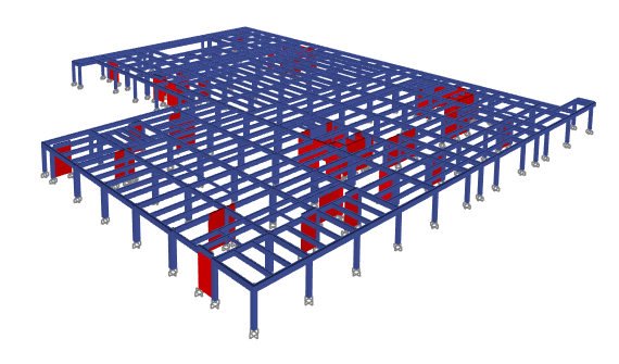 如下圖所示,選中該層框架柱和柱底節(jié)點(diǎn),通過(guò)【指定】>【對(duì)象組】,將其指定到自定義的“frame”對(duì)象組中。同理,選中該層端柱、剪力墻和構(gòu)件底部節(jié)點(diǎn),指定后可以得到自定義的“wall”對(duì)象組。