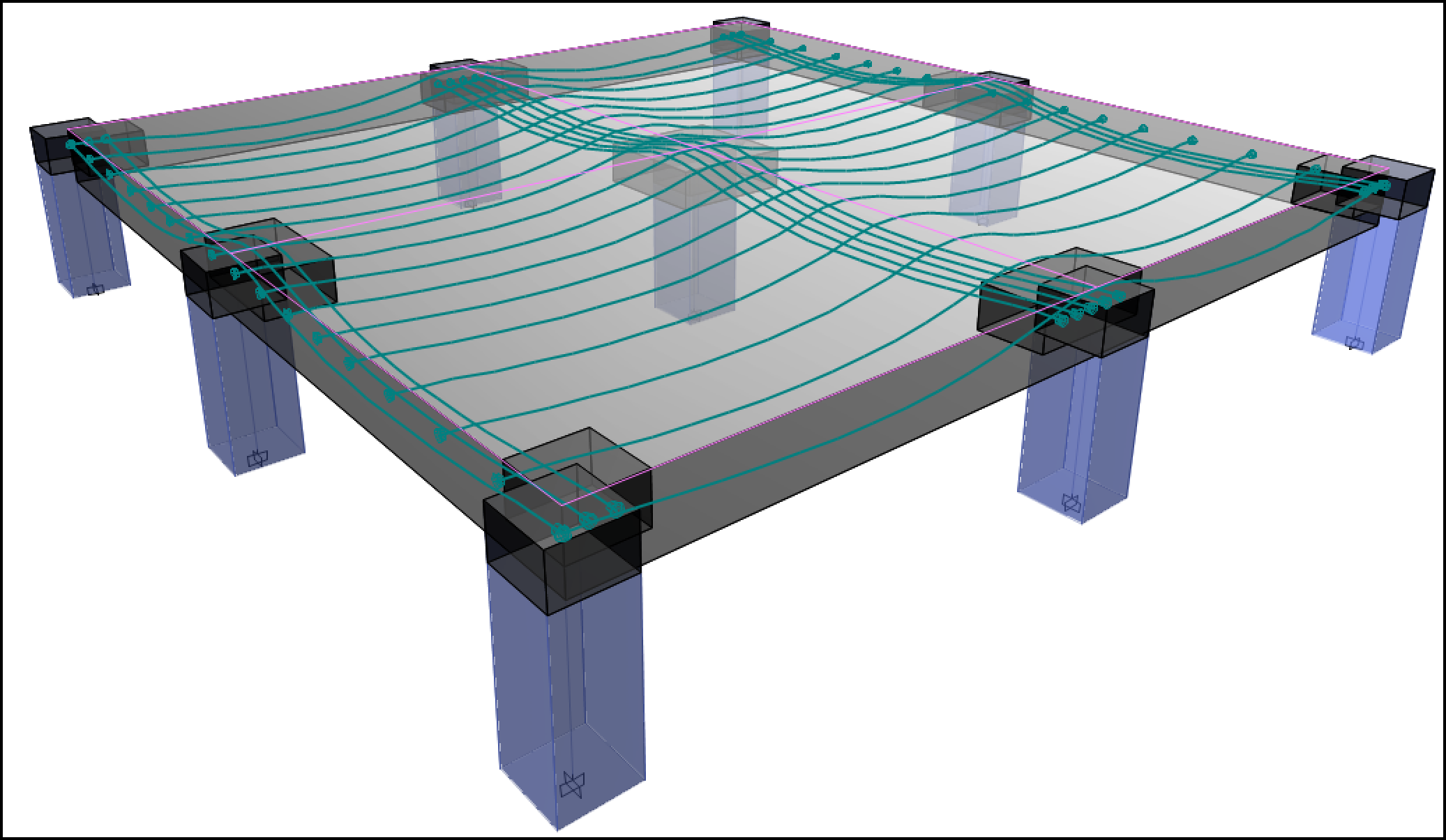 在SAFE中,逐一修改預(yù)應(yīng)力鋼筋的縱剖面很繁瑣,請(qǐng)問(wèn)是否可以進(jìn)行批量修改?如下圖示例,鋼束縱剖面每段均為“一點(diǎn)折線”,欲將其全部修改為“反向拋物線”,如何操作?