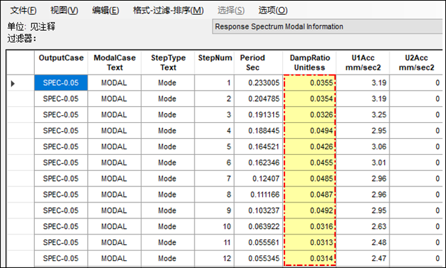 Information”,如下圖所示。該表格中給出了模型各階振型對應(yīng)的阻尼比。