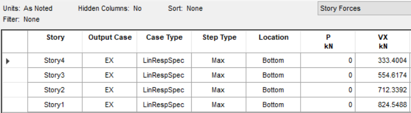 通過表格查看各層剪力如下,與上述表格吻合: