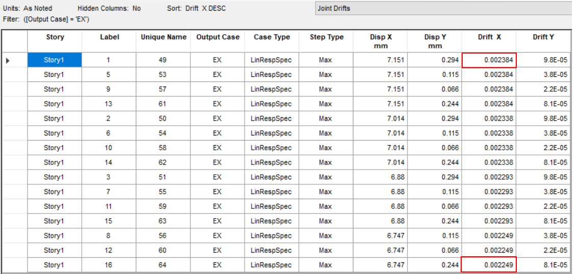 注:ETABS V20.3及以上版本,可以在Story max avg drifts中直接查看反應(yīng)譜工況下的層間位移結(jié)果。