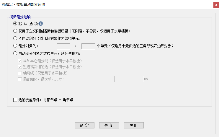 圖2 指定>殼>樓板自動(dòng)剖分選項(xiàng)