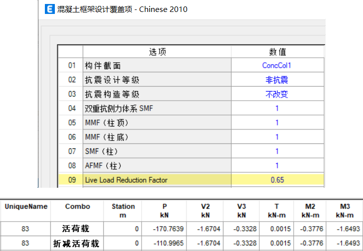 為什么在設(shè)計(jì)覆蓋項(xiàng)中指定的活荷載折減系數(shù)不起作用,設(shè)計(jì)內(nèi)力并沒有發(fā)生變化?