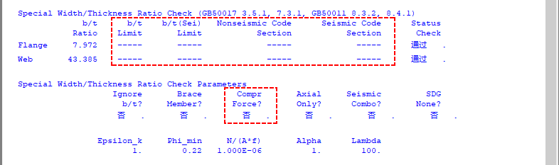 Force?”為“否”,代表軸力為拉力,而非壓力,所以不輸出寬厚比限值及其對應(yīng)條款。