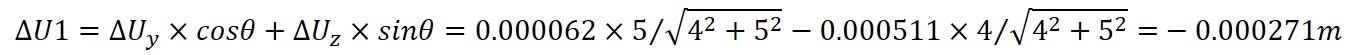 根據(jù)桿件兩端的節(jié)點(diǎn)位移,可驗(yàn)證程序輸出的結(jié)果。由下圖節(jié)點(diǎn)位移可知,ΔUy為0.000062m,ΔUz為-0.000511m。
