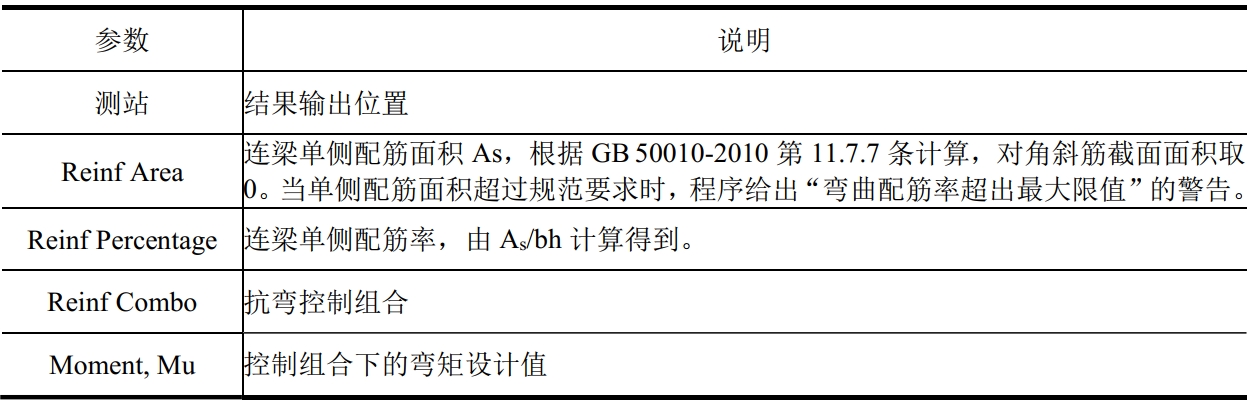 50010-2010第11.7.7條完成連梁的正截面配筋計算。采用對稱配筋,設(shè)計時頂部、底部分別計算,取配筋較大值作為最終結(jié)果,輸出在細(xì)節(jié)表格中。