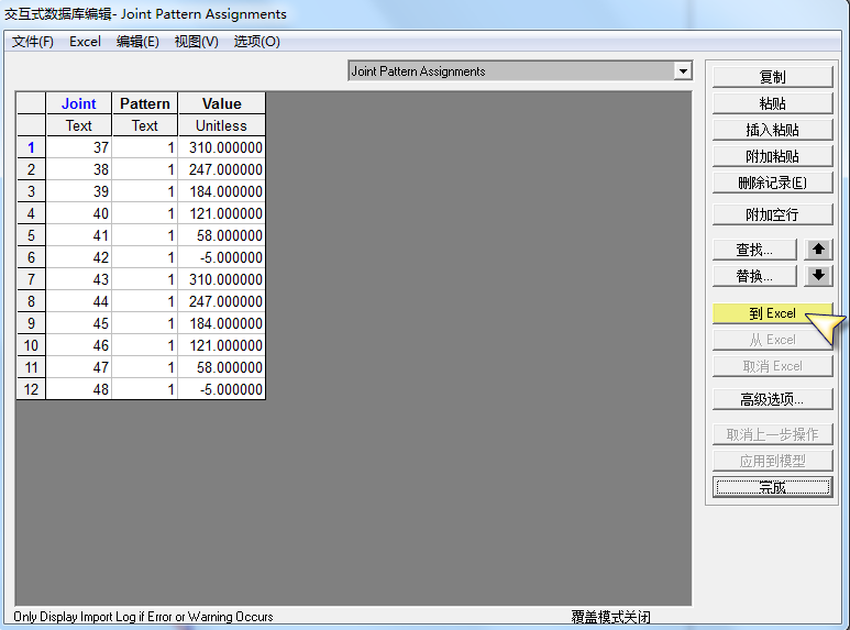 點(diǎn)擊“到Excle”,將表格中Value對(duì)應(yīng)的值修改為非線性函數(shù)的節(jié)點(diǎn)樣式值,如圖5所示。