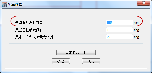 通過點擊菜單選項>容差,查看當前模型的容差設(shè)置,如下圖2所示,該模型當前的合并容差值為100mm。