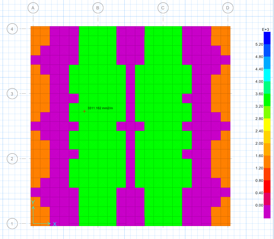 以某鋼筋混凝土樓板設計為例,查看基于有限元配筋結果如圖2。