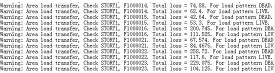 對(duì)樓板屬性為膜的復(fù)雜樓板,樓板荷載丟失較為常見(jiàn),可在分析日志文件中查看是否有對(duì)應(yīng)的荷載丟失警告信息,根據(jù)警告信息定位丟失荷載的面對(duì)象并進(jìn)一步調(diào)整模型(面荷載丟失的原因)。