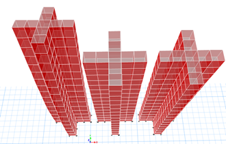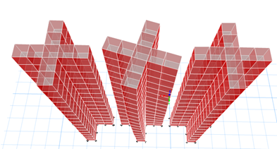 模型一(左):常規(guī)模型,剪力墻與樓板均無(wú)修正。