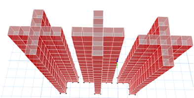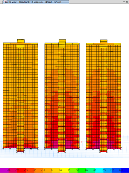 模型三(右):將樓板剛度進(jìn)行放大,F(xiàn)11、F12、F22放大1000倍,使樓板剛度極大,用于近似模擬剛性隔板。